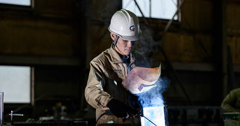 私たち、グローバルコーポレーションはそんなプレキャストコンクリート・プレストレストコンクリート用型枠を製造している西日本でも数少ない会社です。建造物に合わせて型枠を作るため一つとして同じ型枠を作ることなく、1ミリのずれも許されない高い技術とノウハウが必要にはなりますが、自分が作った型枠で出来た建物を見たときの感動はひとしおです。工場内での作業でありながら、地図に残る仕事ができます。